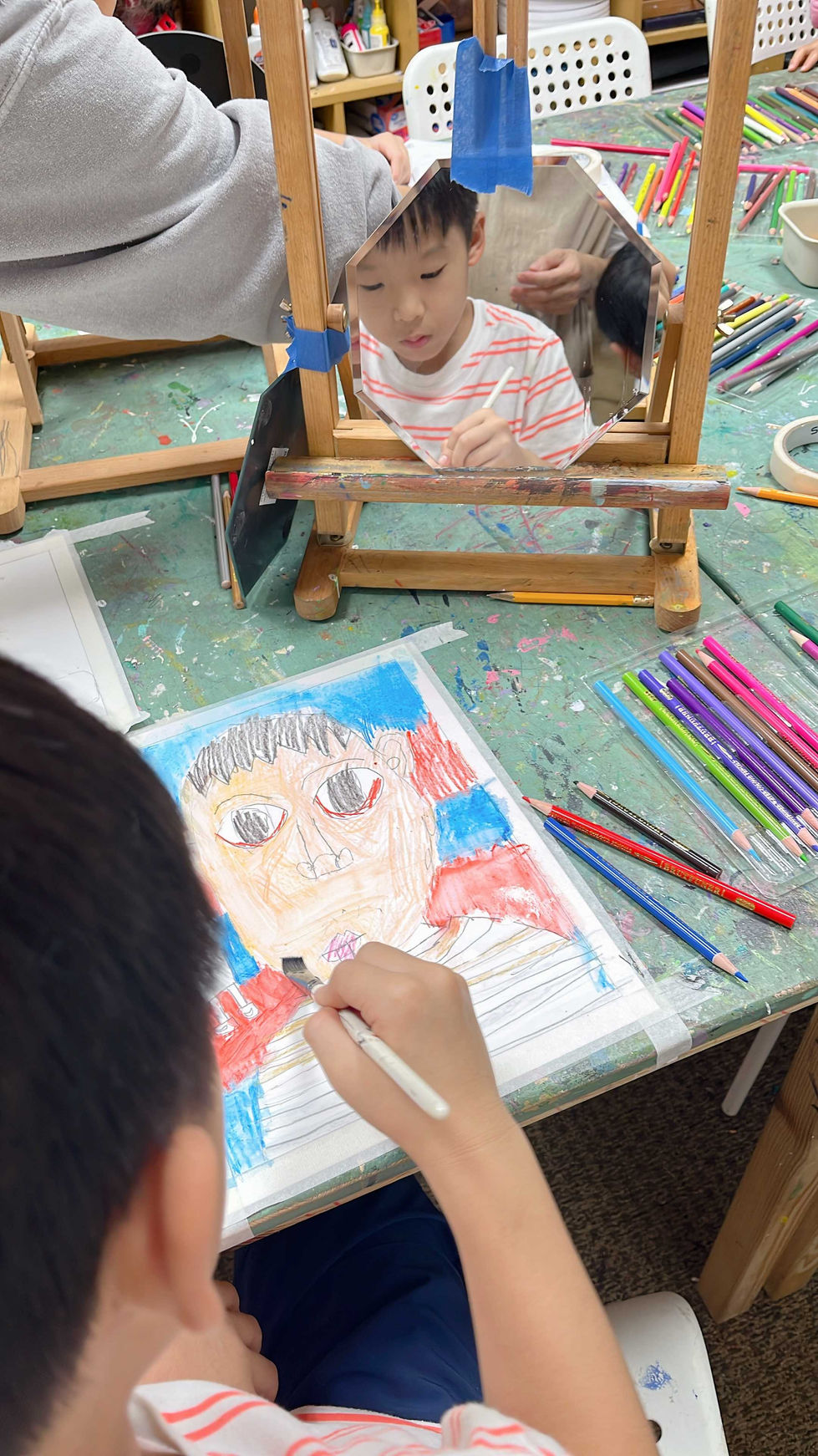 Welcome to Moon Art Studio, where creativity knows no bounds! In our recent project, kids were challenged to draw self-portraits while gazing into a mirror, allowing them to explore their unique identities through art.